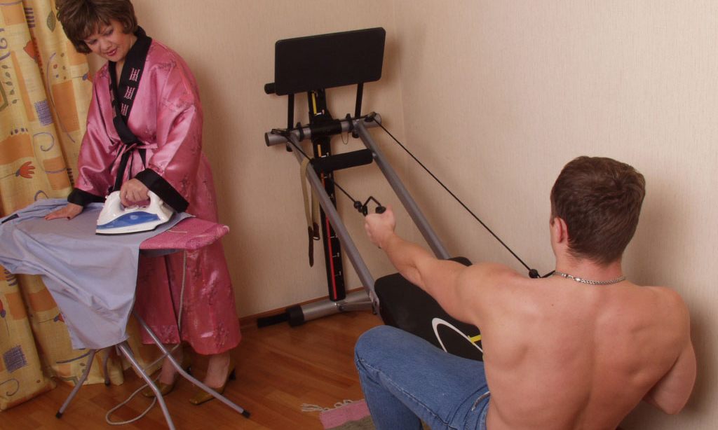 milf mom with hairy pussy licking and spreading on the couch
